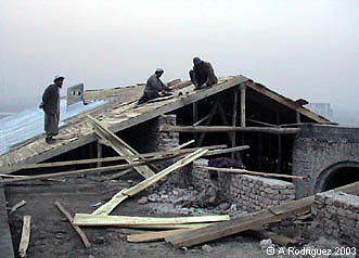 The roof was completed just before the onset of heavy winter snow.